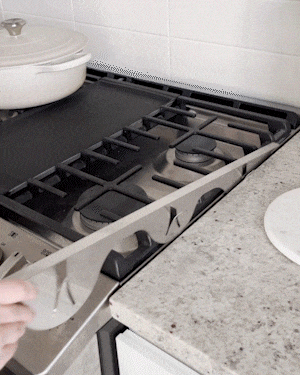 Nossas proteções universais para vãos de fogão se encaixam perfeitamente em todos os fogões. A instalação é fácil: basta remover a película protetora da tampa de aço inoxidável e encaixá-la na lateral do forno. Não são necessárias ferramentas ou acessórios.