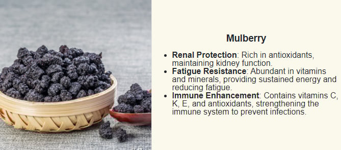 Ingredientes: Ginseng, maca, polygonatum, wolfberry, tâmaras vermelhas, amora