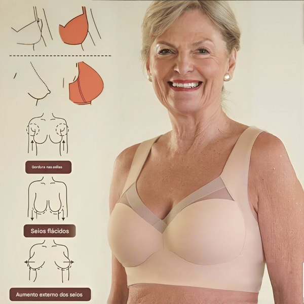 O sutiã modela instantaneamente os seios e oferece uma função antiflacidez , criando um formato mais firme e suave, com suporte total.