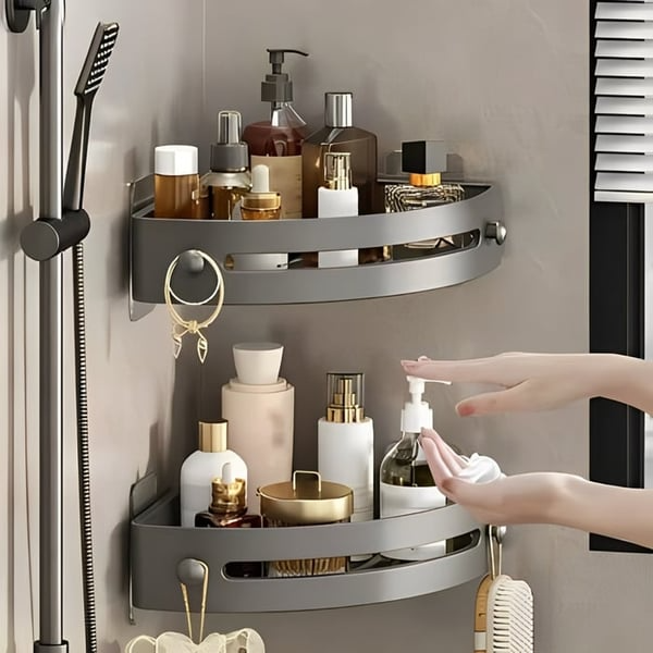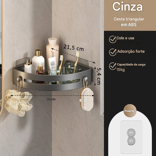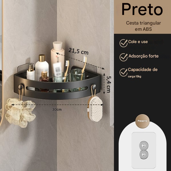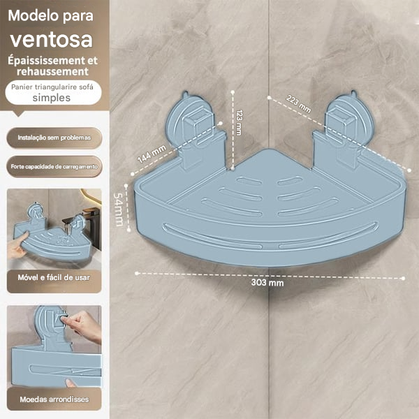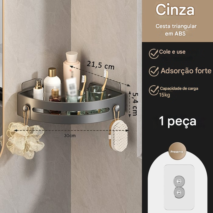 Design de canto que economiza espaço: esta prateleira foi perfeitamente projetada para caber no canto do box do chuveiro, maximizando o espaço. O design de canto também garante que a prateleira não obstrua a área do chuveiro, aumentando o seu conforto.