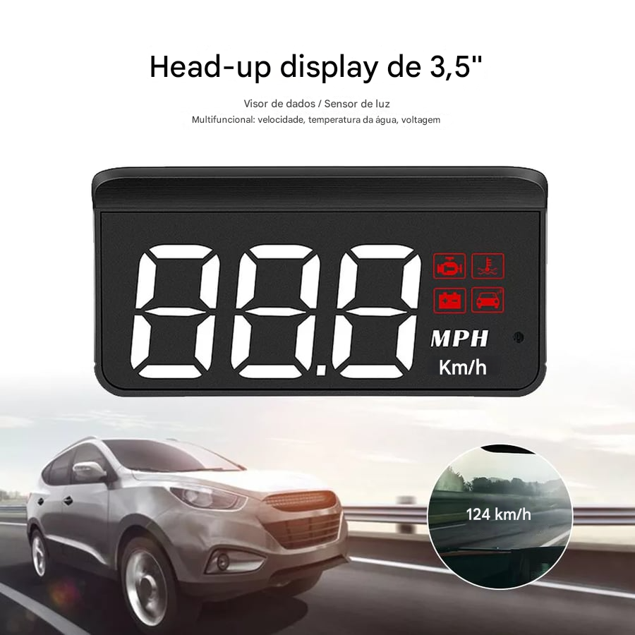 Multifuncional: O Head-up Display exibe a velocidade do veículo, temperatura da água, voltagem e quilometragem em sentido único. Possui função de alarme, alarme de excesso de velocidade, alarme de temperatura da água, alarme de voltagem, lembrete de fadiga ao dirigir e alarme de falha. O HUD possui sensor de luz adaptável, com luz de fundo nítida durante o dia e suave e ofuscante à noite.