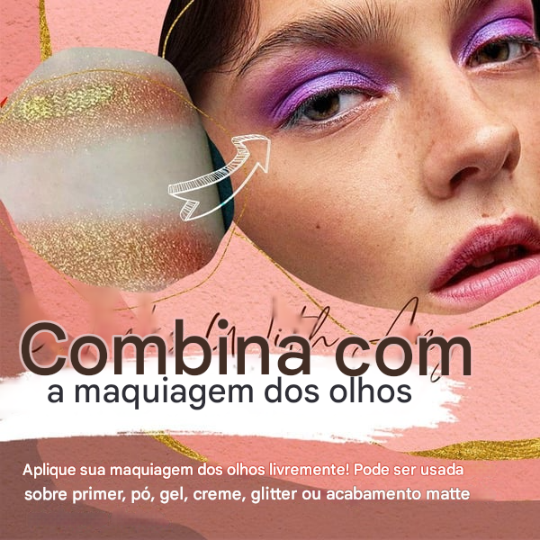 Pode ser aplicado por baixo ou por cima de produtos de maquiagem, como sombra, glitter, base, primer etc.