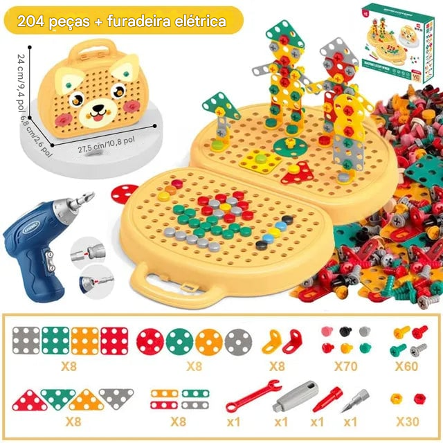 A adição de uma furadeira elétrica torna a inserção do parafuso mais fácil e divertida, com um botão para cima para inserir o parafuso e um botão para baixo para girar o parafuso e retirá-lo