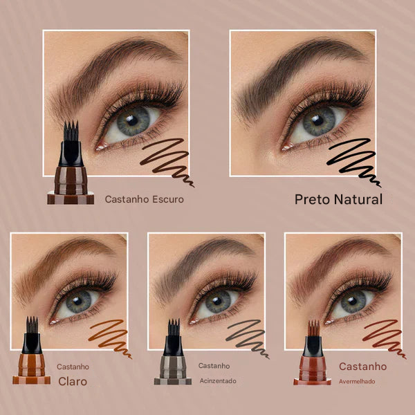 Caneta à Prova d'Água com Quatro Pontas para Barba e Sobrancelha