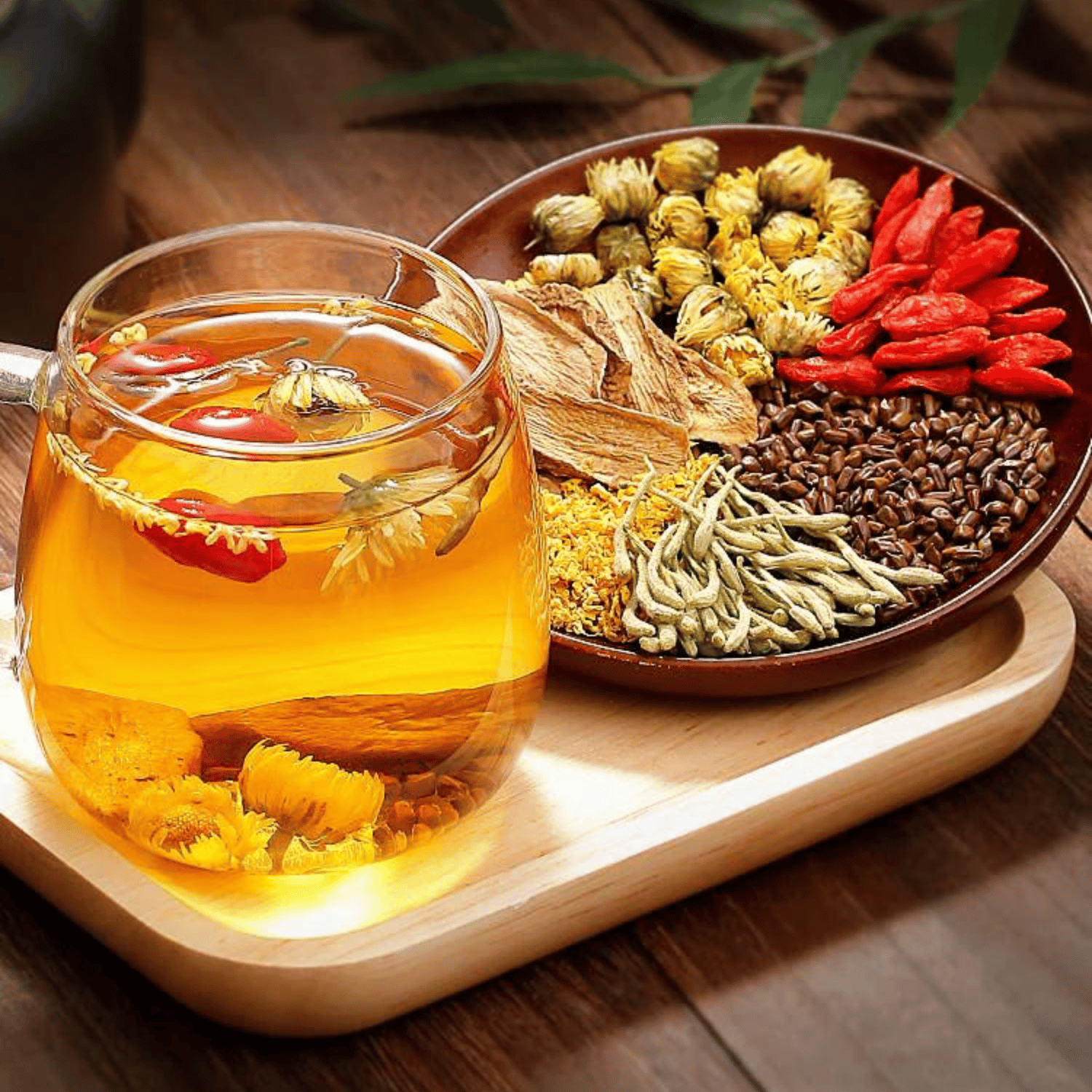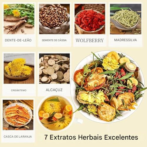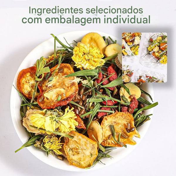 Ingredientes: Dente-de-leão, Cássia, Lycium, Gardênia, Crisântemo, Alcaçuz e Casca de Laranja.