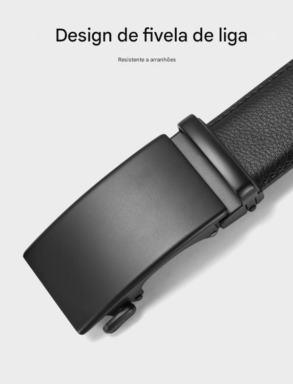 Couro Premium 🐄: Feito em couro bovino de duas camadas, este cinto oferece um visual clean e de alta qualidade, sem furos. Totalmente ajustável para um ajuste perfeito em qualquer ocasião!