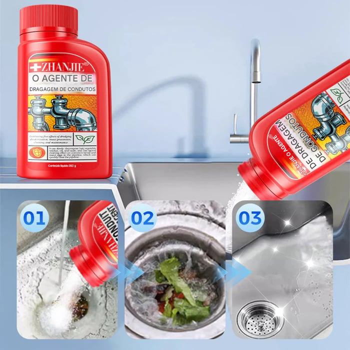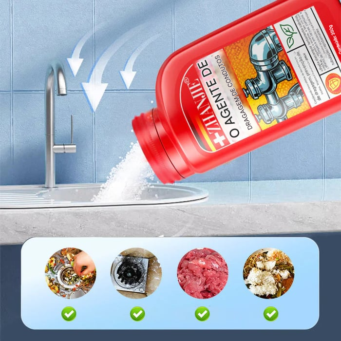 SOLUÇÃO DE LIMPEZA MULTIUSO - Desobstrui entupimentos como cabelos, restos de comida, gordura de carne, pelos soltos de animais de estimação e muito mais. Ao desobstruir, pode matar a causa raiz dos ovos de insetos, dizendo adeus às baratas e pequenos insetos voadores.