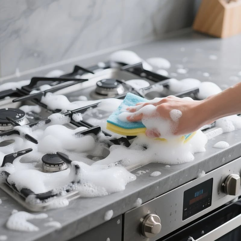 Formulado para lidar com as sujeiras mais difíceis da cozinha — de respingos de óleo a alimentos cozidos — sem esfregar com força. -