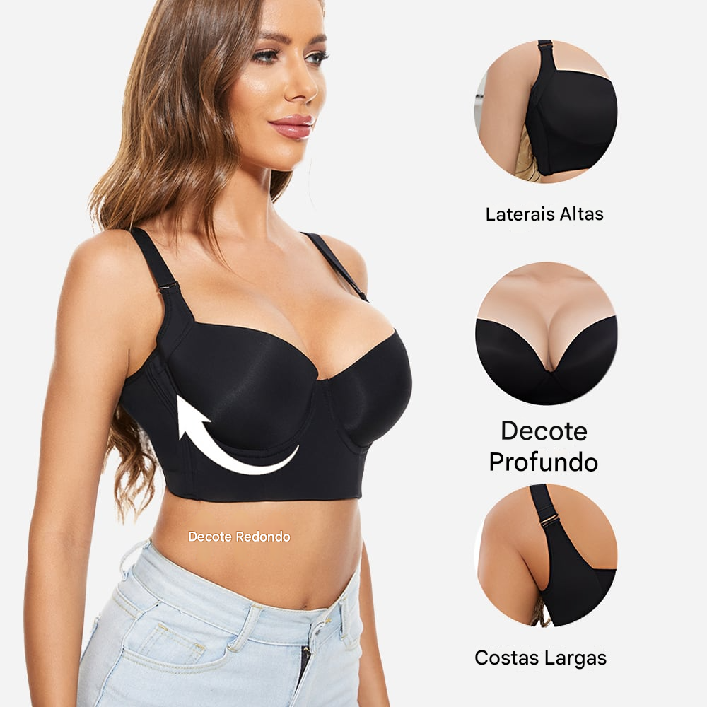O design dos bojos com costura 5D, asas laterais largas, alças de ombro acolchoadas e resistentes e painel traseiro em formato de U garante suporte máximo contra flacidez, ao mesmo tempo em que suaviza as protuberâncias das costas e corrige a gordura das axilas para uma silhueta atraente.